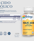 Maximiza tu bienestar con el ácido fólico en forma de folato de Solaray®, una fórmula avanzada que ofrece 470 mcg de ácido fólico por porción. Diseñado para fortalecer la salud del corazón y el cerebro, este suplemento también mejora el estado de ánimo y es esencial para el desarrollo fetal durante las primeras etapas del embarazo.